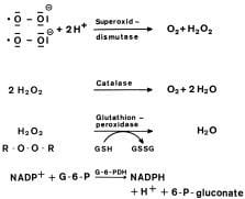 Pathological processes due to superoxide radicals, H2O2 and OH radicals |